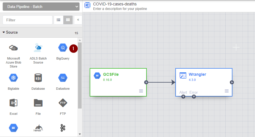 TIP: Don’t forget to give each node a meaningful name. The last thing you want is 3 months down the road, you find yourself staring at 5 different Wrangler nodes and scratching your head while trying to understand what’s the difference between Wranger3 and Wranger5. Let’s be kind to yourself and to whoever might inherit this ETL pipeline, shall we?