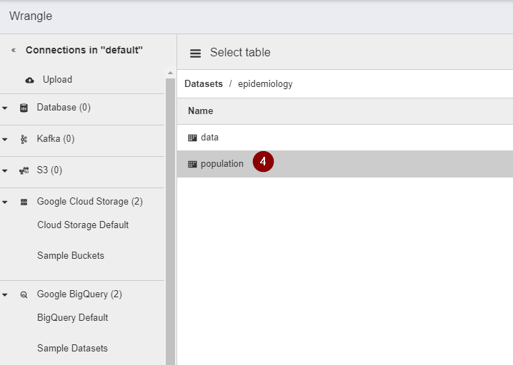 - Navigate and select the BigQuery table containing the population data that we need to clean.