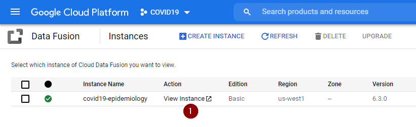 - From the Navigation Menu, go to Data Fusion and click View Instance.