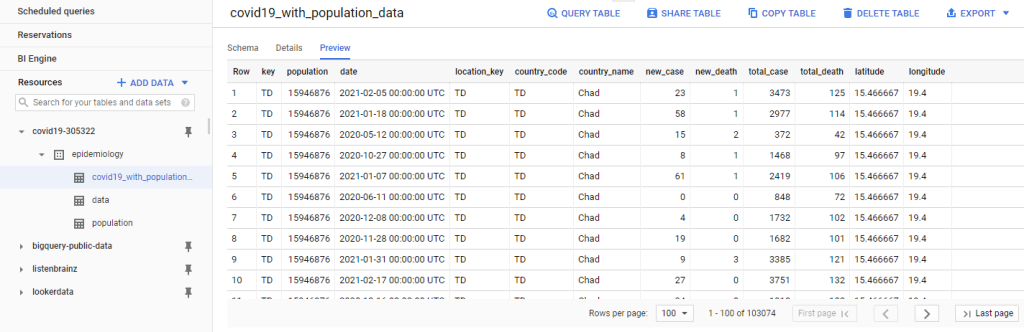But remember we also need our population data, which is currently located inside a Google BigQuery table. So let’s bring it in.