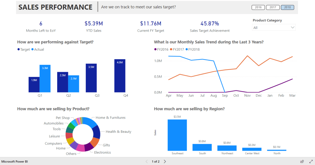 Built a dashboard to track actual sales against target sales across product categories for performance monitoring and timely intervention.